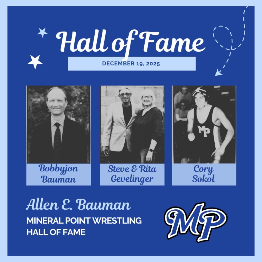 Mineral Point High School will induct new members into the Al Bauman Wrestling Hall of Fame Friday, December 19 during the match vs. Iowa-Grant/Highland. Congratulations to all!