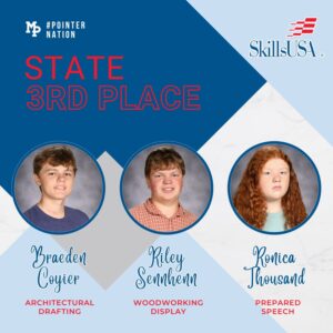Hip hip hooray for our State SkillsUSA competitors in Madison last week at the Alliant Energy Center! STATE BRONZE State 3rd Place – Braeden Coyier (Architectural Drafting) State 3rd Place – Riley Sennhenn (Woodworking Display) State 3rd Place – Ronica Thousand (Prepared Speech) Also a big congratulations to all of our participants on a job… Continue Reading State Skills USA Success